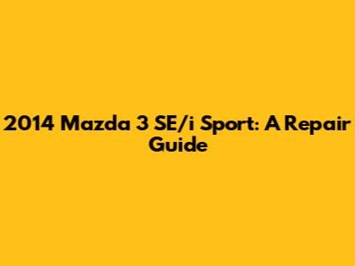 2014 Mazda 3 SE/i Sport: A Repair Guide
