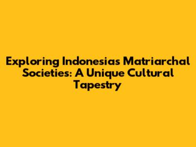 Exploring Indonesia's Matriarchal Societies: A Unique Cultural Tapestry