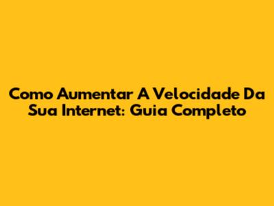 Como Aumentar A Velocidade Da Sua Internet: Guia Completo