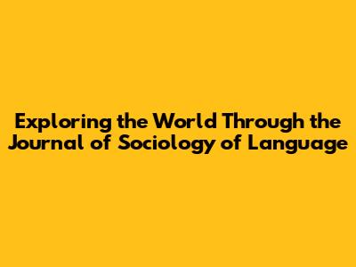 What Exactly is the Journal of Sociology of Language?