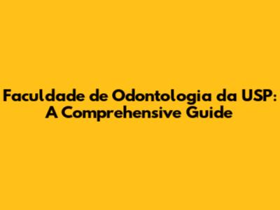 Faculdade De Odontologia Da USP: A Comprehensive Guide