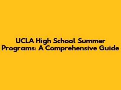 UCLA High School Summer Programs: A Comprehensive Guide
