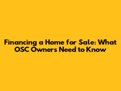 Financing A Home For Sale: What OSC Owners Need To Know