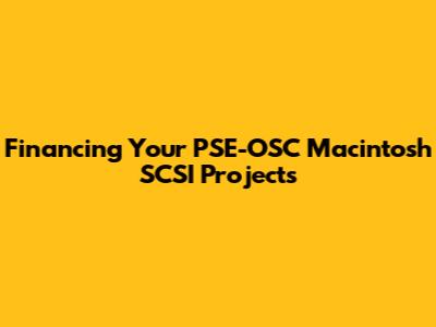 Once you have a good handle on these costs, you can start exploring financing options and figure out how to make your PSE-OSC Macintosh SCSI projects financeable in a realistic way.