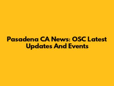Pasadena CA News: OSC Latest Updates And Events