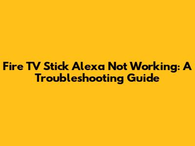 Fire TV Stick Alexa Problems: Troubleshooting Guide