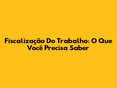 Fiscalização Do Trabalho: O Que Você Precisa Saber