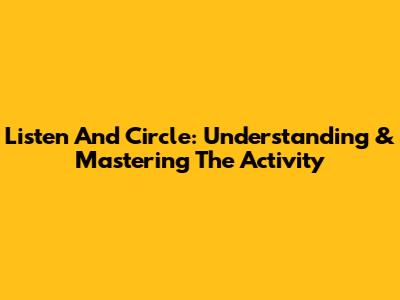 Listen And Circle: Understanding & Mastering The Activity
