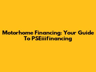 Motorhome Financing: Your Guide To PSEiiifinancing