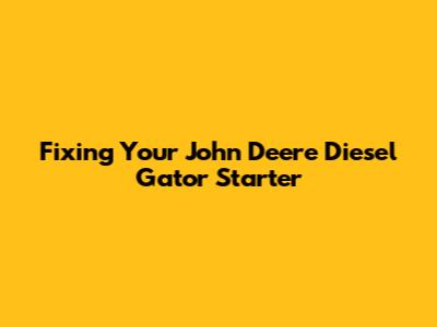 Troubleshooting Your John Deere Diesel Gator Starter