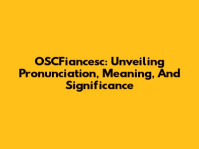 OSCFiancesc: Unveiling Pronunciation, Meaning, And Significance