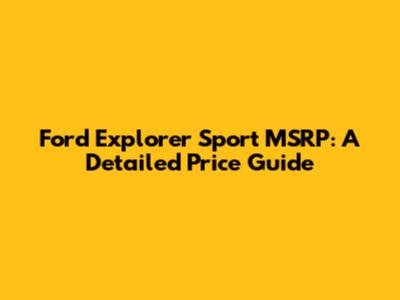 Ford Explorer Sport MSRP: A Detailed Price Guide