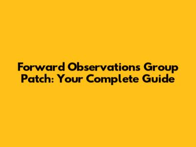 Forward Observations Group Patch: What You Need To Know