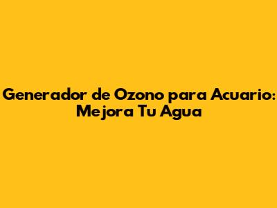 Generador De Ozono Para Acuario: Mejora Tu Agua