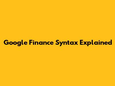 Google Finance Syntax Explained