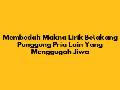 Membedah Makna Lirik 'Belakang Punggung Pria Lain' Yang Menggugah Jiwa