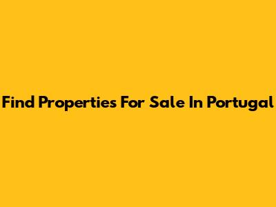 Find Properties For Sale In Portugal