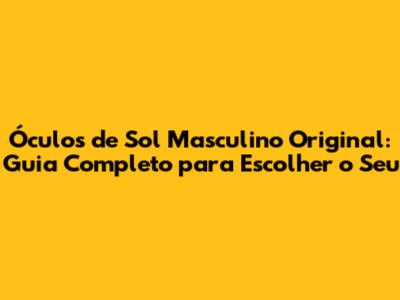 Hey, pessoal! 😎 Se você está procurando por óculos de sol masculino original que combinem estilo, proteção e qualidade, você veio ao lugar certo. Neste guia completo, vamos explorar tudo o que você precisa saber para fazer a escolha perfeita. Vamos abordar desde os diferentes estilos e materiais até dicas de como identificar um produto original e onde encontrar as melhores opções. Preparados para elevar o seu estilo e proteger seus olhos com os óculos ideais? Então, bora lá!