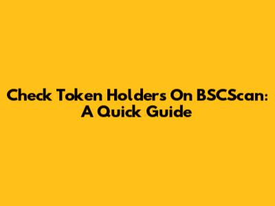 Check Token Holders On BSCScan: A Quick Guide