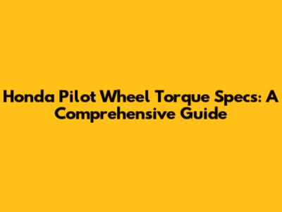 Honda Pilot Wheel Torque Specs: The Ultimate Guide