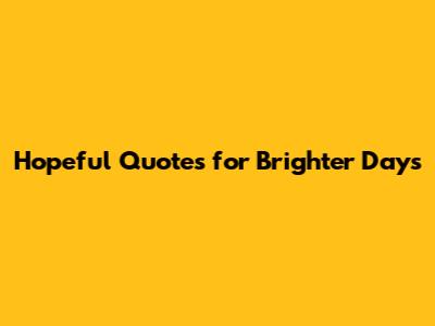 Hopeful Quotes For Brighter Days