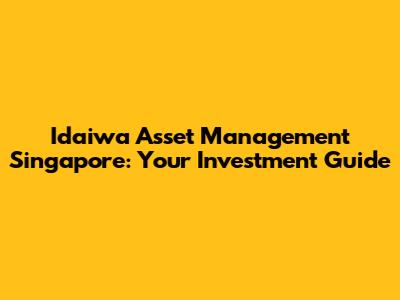 Hey there, investment enthusiasts! Ever heard of Idaiwa Asset Management Singapore? Well, if you're looking to navigate the often-turbulent waters of the financial world, especially in the vibrant Singaporean market, then you're in the right place. We're diving deep into what makes Idaiwa Asset Management Singapore tick, exploring their strategies, and helping you understand if they're the right fit for your investment goals. Buckle up, because we're about to embark on a journey through the world of investment! This comprehensive guide will cover everything you need to know about Idaiwa Asset Management Singapore, from their investment philosophy to the types of services they offer. Whether you're a seasoned investor or just starting out, understanding the landscape of asset management is crucial for making informed decisions. So, let's get started and uncover the secrets behind Idaiwa Asset Management Singapore! Remember, understanding the players in the market is the first step towards building a successful investment portfolio. Let's make sure you're equipped with the knowledge you need to make smart choices. The goal is to provide you with a clear and concise overview, helping you decide if Idaiwa Asset Management Singapore aligns with your financial aspirations. This will allow you to confidently evaluate whether their services are suitable for you. We'll examine their investment approach, the range of products they manage, and the overall value they bring to their clients. This is not just a review; it's a deep dive into what makes Idaiwa tick, so you can decide if they're the right partner for your financial journey.