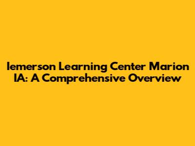 Hey guys! Let's dive into something super important for those of you in Marion, Iowa тАУ the Iemerson Learning Center. This place isn't just any old institution; it's a hub for education, growth, and community engagement. Whether you're a parent seeking the best for your kids, a student aiming to boost your skills, or simply someone curious about what Marion has to offer, you're in the right place. We're going to break down everything you need to know about the Iemerson Learning Center, from its programs and services to its impact on the local community. So, grab a coffee (or your favorite beverage), get comfy, and let's explore this fantastic resource together. This detailed guide covers everything you need to know about the Iemerson Learning Center in Marion, IA. We'll explore its history, mission, and the wide range of programs it offers to the community. Get ready to discover why the Iemerson Learning Center is considered a cornerstone of education and personal development in Marion.