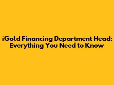 IGold Financing Department Head: Everything You Need To Know