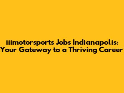 Iiimotorsports Careers In Indianapolis: Find Your Dream Job!