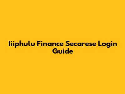 Iiiphulu Finance Secarese Login Guide