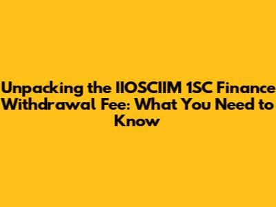 Decoding the IIOSCIIM 1SC Finance Withdrawal Fee Structure