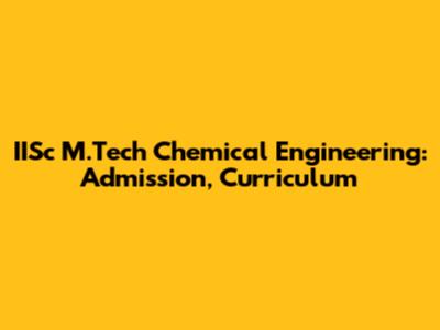 IISc M.Tech Chemical Engineering: Admission, Curriculum