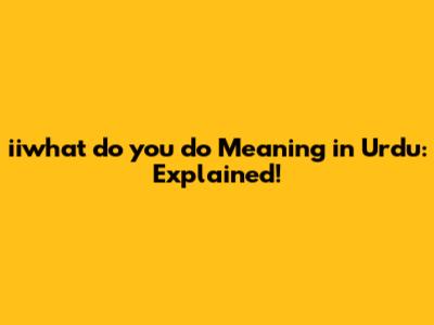 Iiwhat Do You Do Meaning In Urdu: Explained!