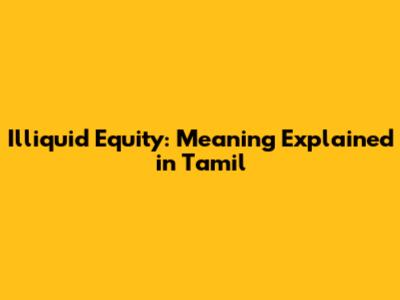 Illiquid Equity: Meaning Explained In Tamil