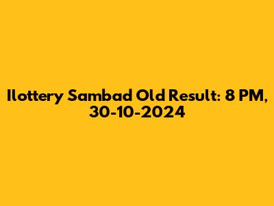 Ilottery Sambad Old Result: 8 PM, 30-10-2024