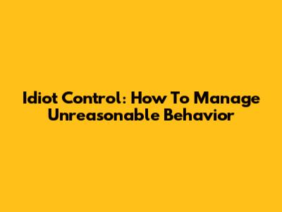 Idiot Control: How To Manage Unreasonable Behavior