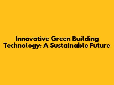 Innovative Green Building Technology: A Sustainable Future