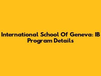 International School Of Geneva: IB Program Details