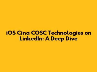 IOS Cina COSC Technologies On LinkedIn: A Deep Dive
