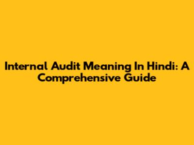 Internal Audit Meaning In Hindi: A Comprehensive Guide