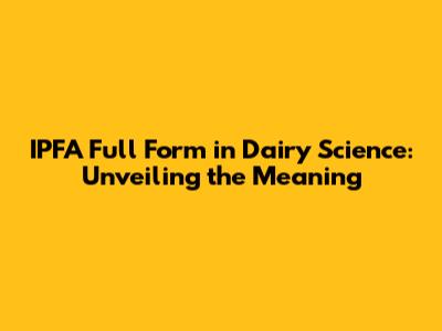 IPFA In Dairy Science: What Does It Stand For?
