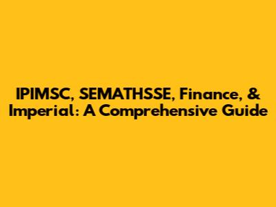 IPIMSC, SEMATHSSE, Finance, & Imperial: A Comprehensive Guide