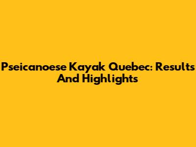 Pseicanoese Kayak Quebec: Results And Highlights