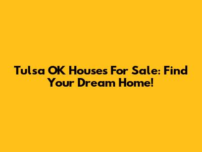 Tulsa OK Houses For Sale: Find Your Dream Home!
