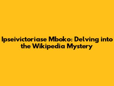 Ipseivictoriase Mboko on Wikipedia: What's the Deal?