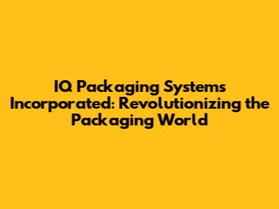 Hey guys! Ever wondered about the unsung heroes behind your favorite products arriving safely and securely? Let's dive into the world of IQ Packaging Systems Incorporated, a company that's been making waves with its innovative approach to packaging solutions. In today's fast-paced market, where efficiency and sustainability are key, understanding the role and impact of companies like IQ Packaging Systems is more crucial than ever. From enhancing product protection to optimizing supply chain logistics, their contributions touch various industries, and it’s time we unpack what makes them tick. So, buckle up, and let’s explore the ins and outs of IQ Packaging Systems!