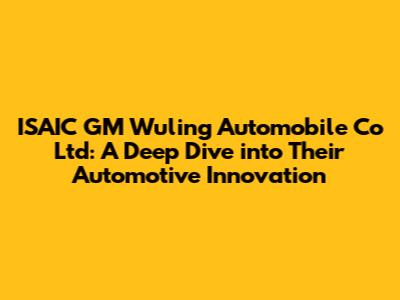 ISAIC GM Wuling: A Deep Dive Into Their Automotive Innovation