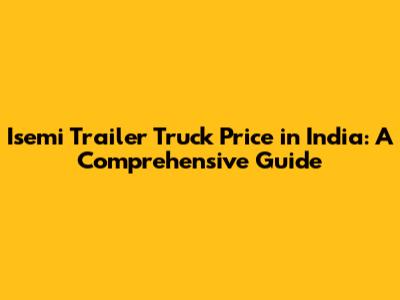 Isemi Trailer Truck Price In India: A Comprehensive Guide