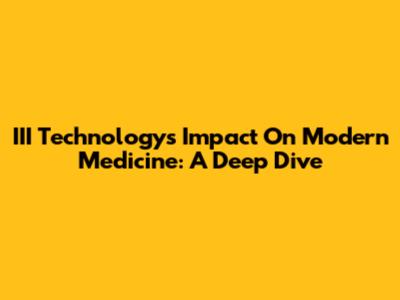 III Technology's Impact On Modern Medicine: A Deep Dive