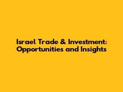 Israel Trade & Investment: Opportunities And Insights